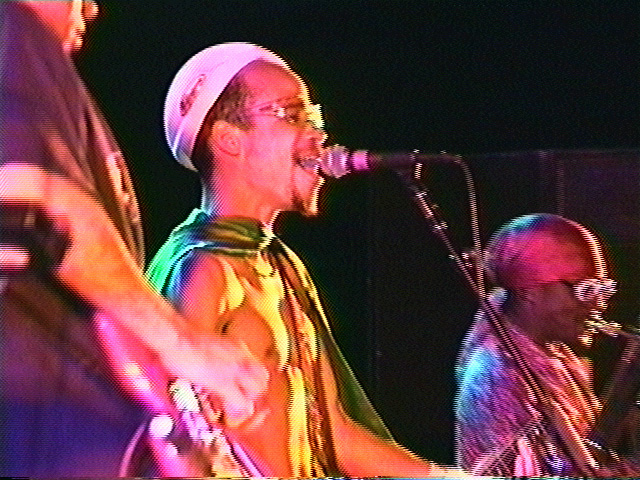 So here we are, just a few moments before the show, gathered around in the lounge area backstage. The members of Weapon of Choice are just chillin' and enjoying each others' nutfunky company. When we inform the band that their show is going to be on the net they look at each other. Meganut, the master nut of the funkynuttychunky gang stares at us for a while and breaks the silence by uttering this nut of a line: "Connecting by way of the Internut is sheer utter nutness." |