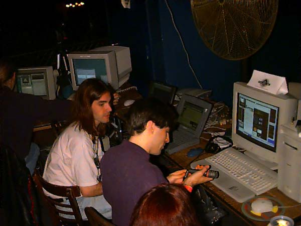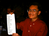 | Setting up for the netcast... | Tanya's biggest fan, Vinh Le, holds up her set list for the night (which doesn't include the encore she dedicated to him) |